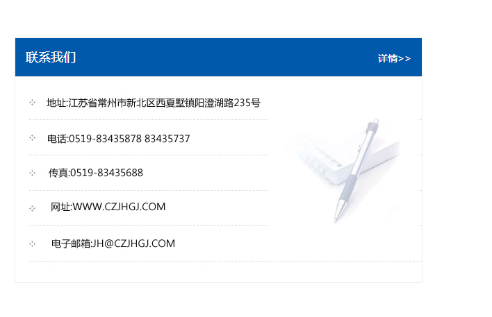 傳真:0519-83435688    郵編:213135    網址:WWW.czjhgj_com.shdhcy.com    電子郵箱:JH@czjhgj_com.shdhcy.com